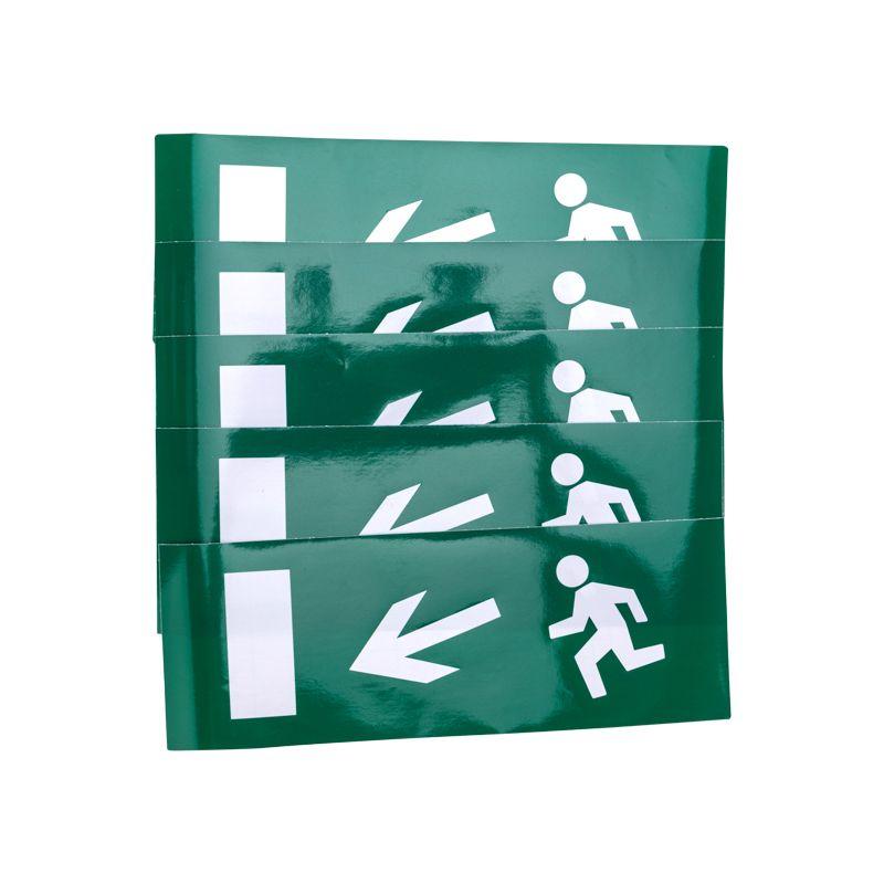 Наклейка для прозрачного аварийного светильника Арт 74-0001, размером 120*320мм. Наклейка выполнена из литой цветной пленки, которая имеет долгий срок службы и защиту от выцветания.