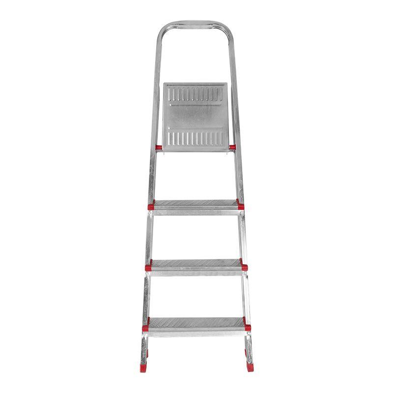 Стальная стремянка REXANT – недорогой и прочный помощник при высотных работах. Применяется как при коммунальной и строительной деятельности, так и в быту, дома, на даче, в гараже и саду. Устойчивая конструкция и надежная фиксация в рабочем положении обеспечивается за счет специального соединительного ушка. Пластиковые ножки предотвращают скольжение и не царапают напольное покрытие. Усиленное упрочненное крепление пластиковых ножек предотвращает их выпадение. Гальваническое покрытие придает надежную устойчивость к коррозии. Передовая технология заклепочного крепления ступенек. Широкие ступени с противоскользящим рифлением. Технические характеристики: Количество ступенек: 4 Высота площадки: 81 см Высота стремянки в разложенном состоянии: 126 см Габаритная высота: 135 см Ширина: 44 см Длина: 83 см Вес: 4,9 кг Максимальная нагрузка: 150 кг