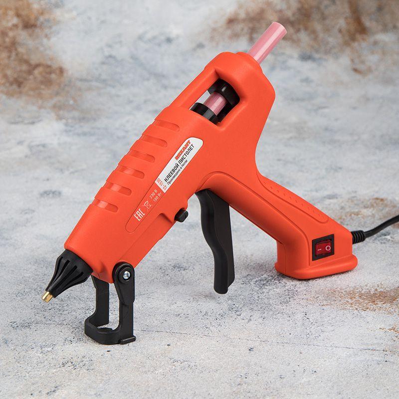 Пистолет клеевой «ЭКСПЕРТ» предназначен для прочной фиксации поверхностей с помощью расплавленной клеевой массы. Принцип работы: клеевой стержень плавится в металлической камере с помощью нагревательного устройства и для точного дозирования при нажатии на курок подается из сопла на склеиваемую поверхность. Мощность пистолета позволяет очень быстро разогреть клеевой стержень и получать удовольствие от быстрой и бесперебойной работы. С его помощью вы сможете склеить: дерево, пластик, резину, кожу, стекло, металлы (их лучше перед работой разогревать феном), ткань, пенопласт, керамику, картон, бумагу, цветы или что-то другое. Используется как в домашних условиях, так и на производстве: для монтажа электрических плат, декорирования, изготовления упаковочной и сувенирной продукции, при прокладке кабеля сетей фиксированной телефонной связи и сетей передачи данных, при производстве багетов и картинных рам. Основные преимущества: 1. Быстрое нагревание. 2. Автоматическая регулировка температуры, подходящая для клее