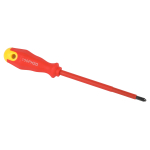 Диэлектрическая крестовая отвертка ЭРА PH 2х150. Современная эргономичная отвертка для работы с электрооборудованием. Изоляционное покрытие позволяет осуществлять работы под напряжением до 1500 В переменного / 1000 В постоянного тока. Стержень диэлектрических отверток ЭРА изготовлен из хром-молибден-ванадиевой стали, а значит инструменты прослужат долгие годы даже при постоянном использовании. Отвертки ЭРА для электрооборудования имеют магнитные наконечники для эффективного монтажа элементов в труднодоступных местах. Двухкомпонентная рукоятка отвертки удобно лежит в руке, предотвращает проскальзывание инструмента во время работы, позволяет придать максимальное усилие вращению.