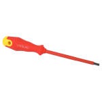 Диэлектрическая шлицевая отвертка ЭРА SL 4х100. Современная эргономичная отвертка для работы с электрооборудованием. Изоляционное покрытие позволяет осуществлять работы под напряжением до 1500 В переменного / 1000 В постоянного тока. Стержень диэлектрических отверток ЭРА изготовлен из хром-молибден-ванадиевой стали, а значит инструменты прослужат долгие годы даже при постоянном использовании. Отвертки ЭРА для электрооборудования имеют магнитные наконечники для эффективного монтажа элементов в труднодоступных местах. Двухкомпонентная рукоятка отвертки удобно лежит в руке, предотвращает проскальзывание инструмента во время работы, позволяет придать максимальное усилие вращению.