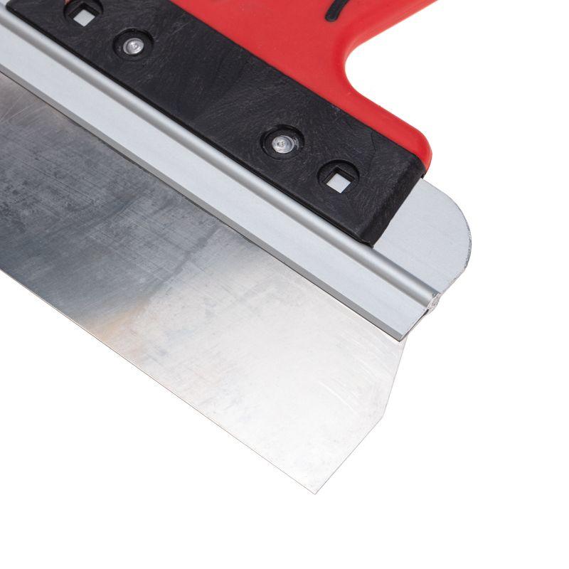 Фасадный шпатель используется для проведения работ по оштукатуриванию и облицовке фасадных поверхностей. Предназначен для нанесения, выравнивания и сглаживания отделочных составов, а также для проведения других ремонтно-отделочных работ. Шпатель изготовлен из нержавеющей высоконагартованной стали толщиной 0,5 мм, 1500н/мм, что обеспечивает износостойкость, долгий срок службы и высокую устойчивость к коррозии. Инструмент оснащен алюминиевым ребром жесткости, которое предотвращает искривление полотна. Эргономичная двухкомпонентная ручка обеспечивает надежный захват инструмента.