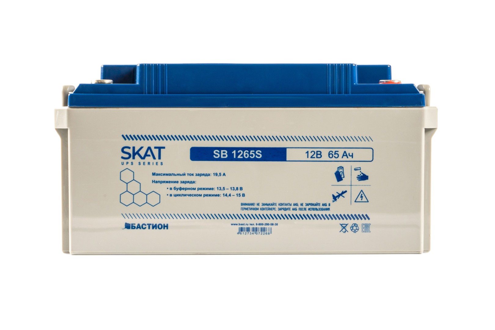 SKAT SB 1265S АКБ свинцово-кислотная тип AGM 12V 65Ач Iзар.26А, клеммы под болт М6
