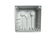 С штатным отверстием Ø 30 мм в крышке, IP66/67, усиленная, предназначена для наружной установки крупногабаритных камер видеонаблюдения, накладная. 180х180х97, с возможностью установки платы питания и АКБ 12В 7А/ч, материал пластик