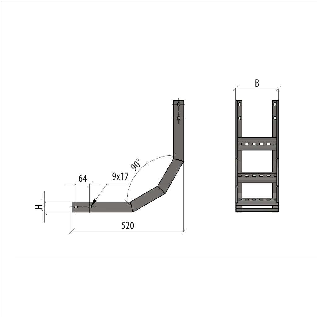 Секция вертикальная угловая для кабельных лотков лестничного типа |
