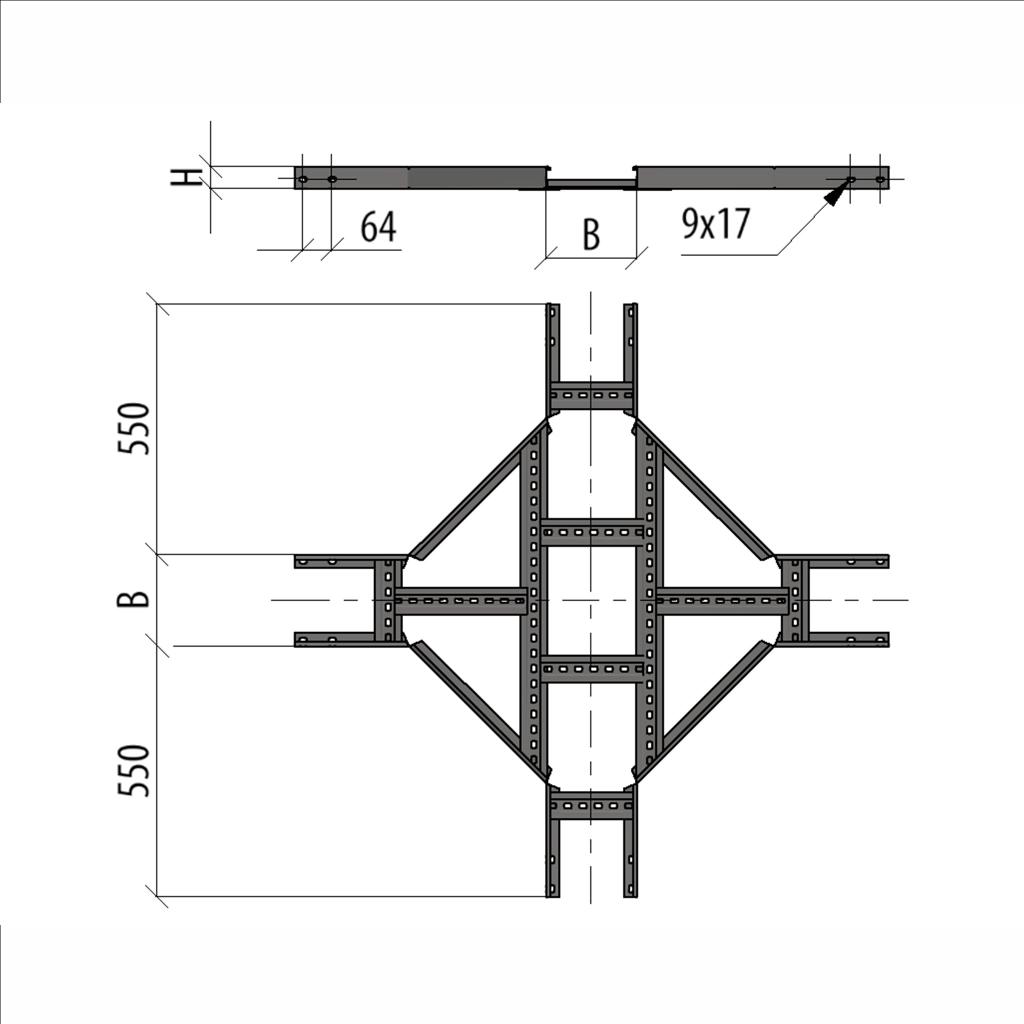 Х-разветвитель лестничный 100х100х1,2 мм "Быстрый монтаж"