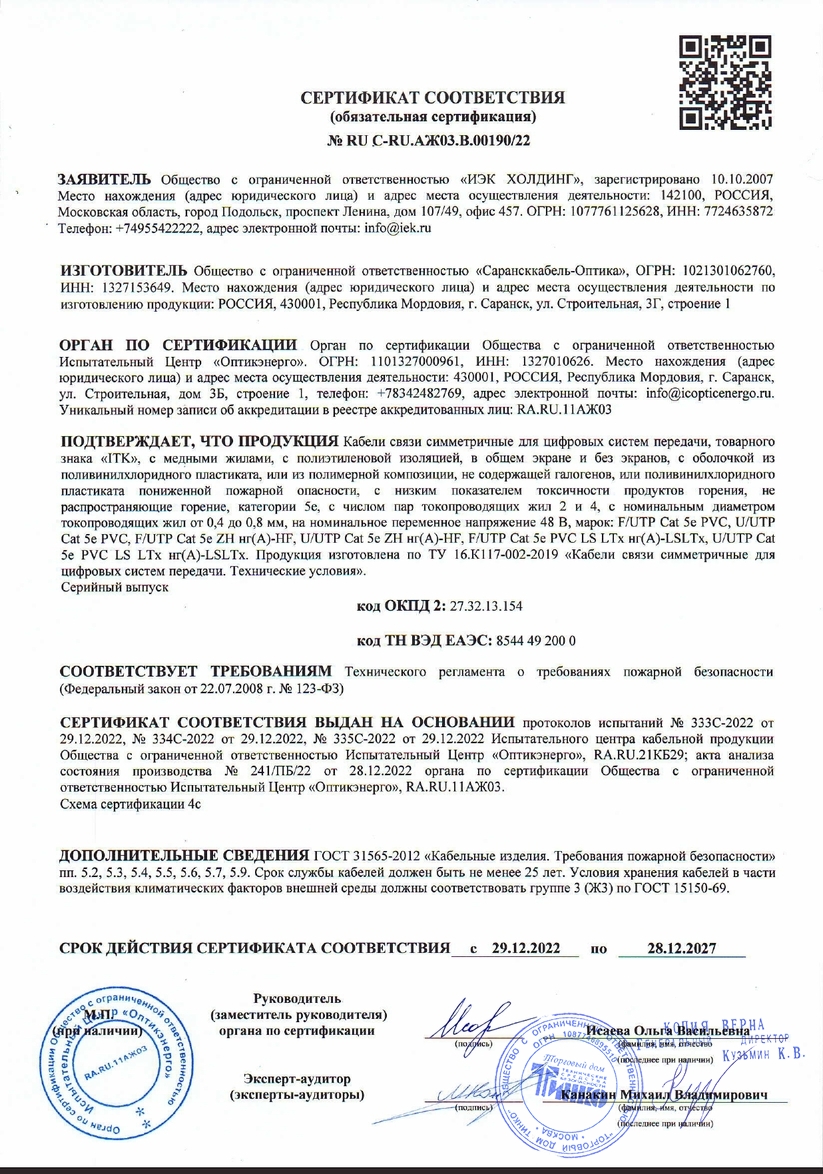 ITK Витая пара U/UTP 5E 4х2х24AWG LSZH серый (305м) РФ/Т