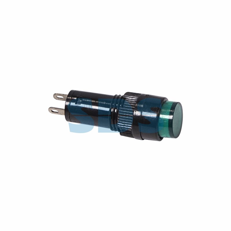 Индикатор Ø10 220V зеленый предназначен для индикации состояния электрических цепей напряжением 220В. Такие индикаторы устанавливаются на лицевых панелях управления электрооборудованием (в электрощитах, промышленном оборудовании, объектах энергоснабжения, измерительных приборах, блоках питания, и других местах). Разнообразные цветовые варианты исполнения позволяют эффективно комплектовать панели управления. Изделие состоит из двух основных частей - лицевой части (головки) и контактной. Монтаж осуществляется без применения винтов на плоских панелях толщиной от 0.5мм до 4мм, с помощью гайки. Подключение контактов осуществляется с помощью пайки. Основные характеристики: Номинальное напряжение: 220В; Цвет индикации: зеленый; Установочный диаметр: 10.2мм; Рабочая температура: от -20℃ до +50℃; Допустимая влажность: до 85%, без выпадения конденсата; Преимуществами использования данного изделия является быстрота и удобство монтажа.