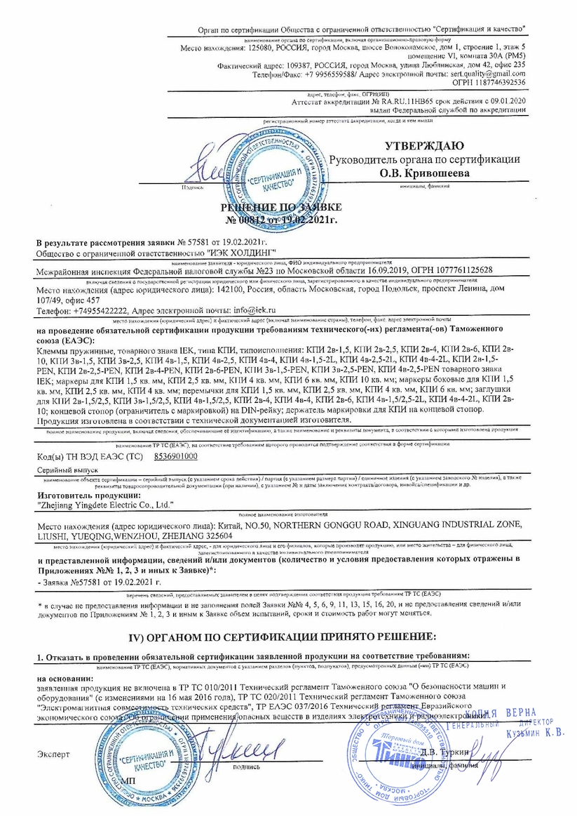 Тип электрического присоединения 1