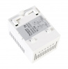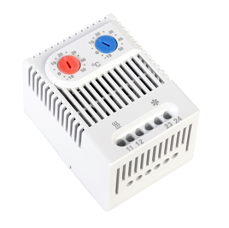 Предназначен для независимого включения и выключения нагревателей и вентиляторов в диапазоне температур от -10 до +50°C. Разность температур переключения 7 K, погрешность ± 4 К. Термостат NC регулирует нагреватели. Термостат NO регулирует вентиляторы с фильтром и сигнальные датчики при превышении температуры. Приборы нагрева и охлаждения могут быть включены независимо друг от друга. Терморегулятор имеет компактный пластиковый корпус IP20, серого цвета (В.Ш.Г.) 67 x 50 x 46 мм. Устанавливается на DIN-рейку 35 мм. Подсоединяется четырехполюсным зажимом. Предусмотрено использование жестких проводов 2,5 мм, многопроволочных с наконечником 1,5 мм. Максимальный момент затяжки зажима 0,5 Нм. Максимальная коммутационная способность AC 250В, 10(2)A; AC 120В, 15(2)A; DC 30 Вт. Температура эксплуатации и хранения от -45 до +80 °C. Срок службы более 100 000 циклов. Вес 90 гр., поставляется в индивидуальной упаковке.