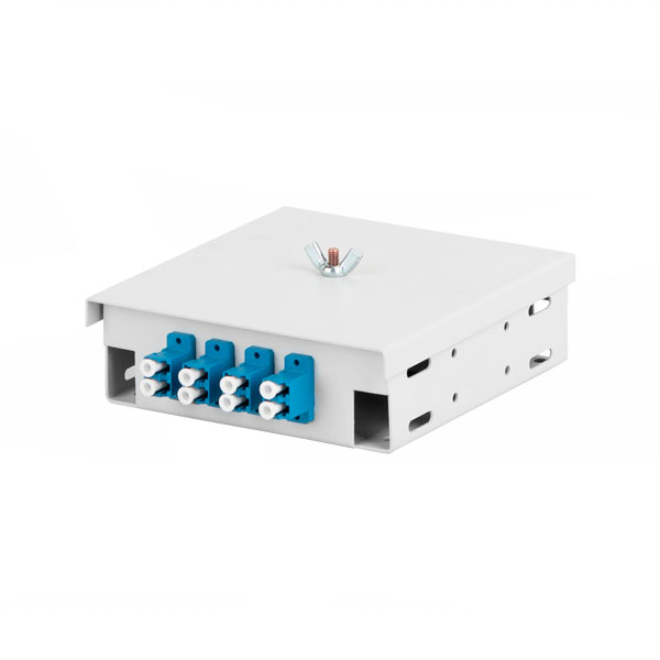 Оптический кросс NIKOMAX настенный, укомплектованный на 2 порта LC/UPC (1 двойной LC/UPC адаптер), SM 9/125 OS2, стальной, серый, в комплекте: адаптеры, монтажные шнуры 1м, ложемент, гильзы, заглушки
