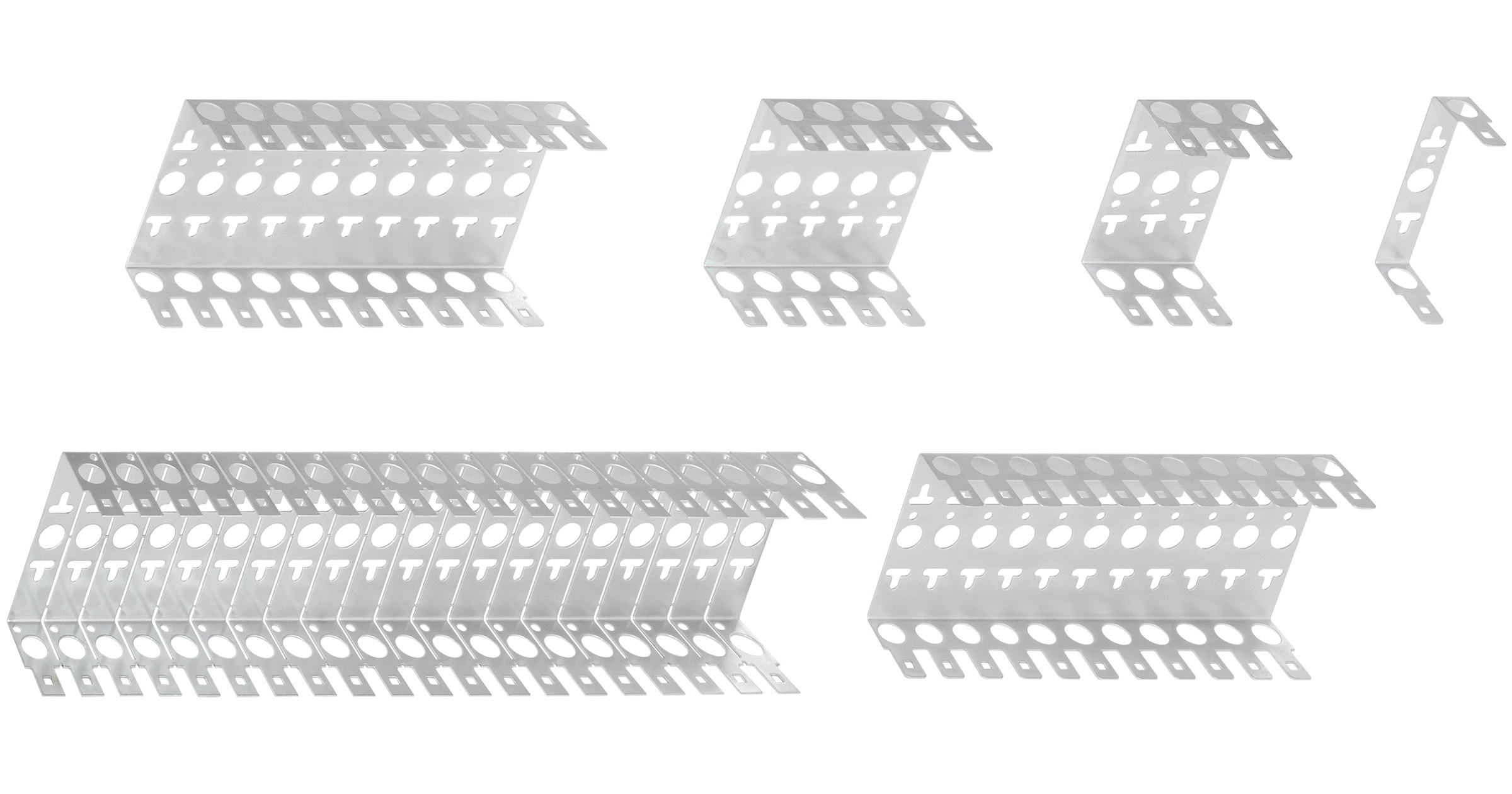 Кронштейны предназначены для установки на них десятипарных плинтов типа KRONE. Также через них производится заземление устанавливаемой на плинтах защиты. Кронштейны NIKOMAX выполнены из нержавеющей стали и поставляются в шести возможных вариантах: для одновременного монтажа от 1 до 20 плинтов. Секции кронштейна NMC-WCPLBR20-2 – отламывающиеся, что позволяет подогнать его под любой нужный размер. Монтаж кронштейнов возможен на стену или на конструктив NMC-TBP-2U для установки в шкаф или стойку 19”. Все кронштейны поставляются упаковками по 2 штуки.