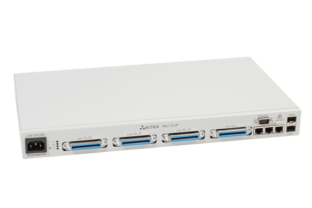 VoIP-шлюз TAU-72.IP: 72хFXS, 3хRJ45-10/100/1000, 2 слота для SFP, SIP/H.323, 1U, DC 48V