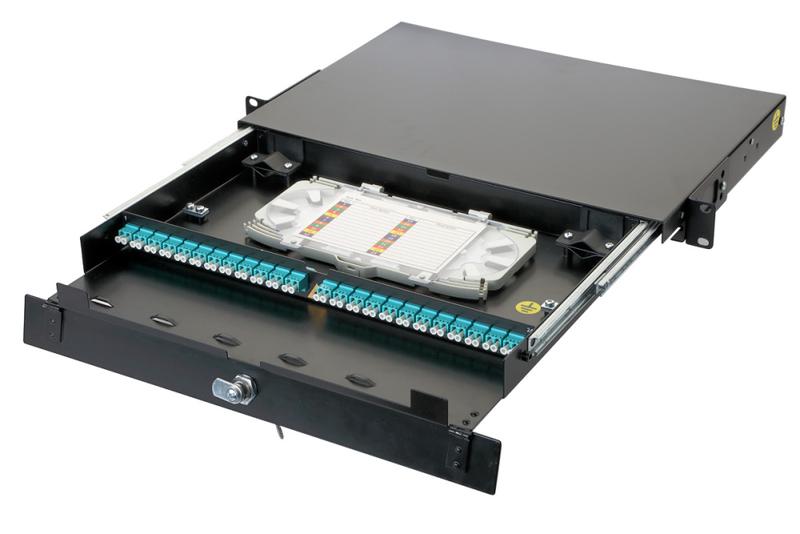 Оптическая панель серии 47D-24, 19'' 1U выдвижная, корпус на 24 адаптера, 12 дуплекс LC адаптеров, OM3