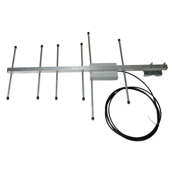 АН-433 Антенна направленная многоэлементная с разъёмом  Для использования со стационарными передатчиками и одноканальными приёмниками систем Lonta-202, Lonta OPTIMA, "Риф Стринг-200", "Риф Ринг-701" при дальностях 5 км и боле или в сложных условиях распространения радиоволн  Многоэлементная направленная антенна АН-433 предназначена в основном для использования со стационарными передатчиками радиоканальных систем охранной сигнализации. Антенна обеспечивает при передаче в выбранном направлении усиление не менее 10 дБ, что эквивалентно увеличению мощности передатчика в 10 раз и дальности передачи на открытой местности в 2,5-3 раза. Антенна может использоваться в качестве приемной, если сигналы должны приниматься с одного выбранного направления. Например, если к приемнику, который работает с одним передатчиком, вместо антенны АШ-433 подключить антенну АН-433, то дальность приема на открытой местности увеличится еще в 2-3 раза.  Технические характеристики: - Рабочая частота: 433,92 МГц - Коэффициент усиления: 10 д