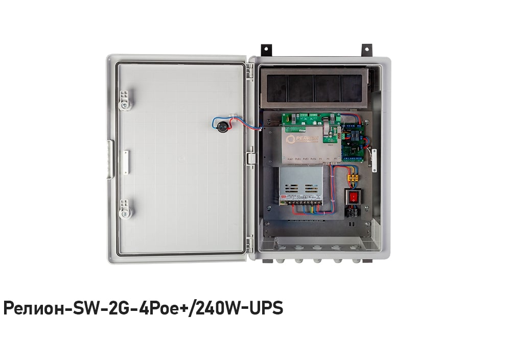 РЕЛИОН-SW. Коммутаторы управляемые, уличные, в корпусе из ударопрочного пластика. Питание подключенных устройств по технологии PoE, до 60Вт на порт. Бюджет PoE от 60 до 480Вт, в зависимости от исполнения. Автоматическая перезагрузка зависших IP видеокамер. Производительность: таблица MAC-адресов: 8К; Буфер пакетов: 1 Мбит. Управление: Web-интерфейс (IPv4). VLAN: 802.1Q Tagged VLAN; Port Based VLAN; VLAN Trunking; Максимальное количество активных VLAN: 10; Любая архитектура построения сети, включая кольцо. Температурный диапазон от -45 до +55°С. Степень защиты IP66. Резервный источник питания в исполнении с UPS. Кабельные вводы входят в комплект поставки