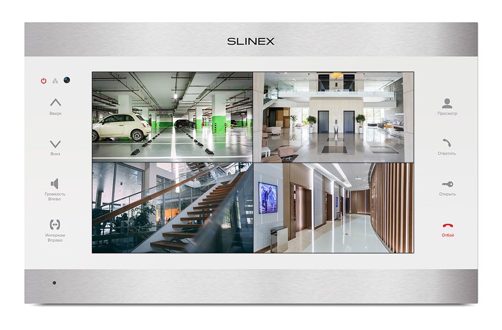 1080P цветной, настенный, 10” сенсорный IPS TFT экран 16:9, разрешение экрана 1024×600. Подключение 2-х панелей и 2-х камер любого из стандартов: AHD/TVI/CVI/CVBS до 2 Мп либо 2-х камер IP до 2Мп. Запись фото или видео на SD-карту до 256 ГБ. Интерком до 4-х домофонов: SL-10M(HD), Sonik 10, SL-07M(HD), SQ-07MT(HD), SM-07M(N), Sonik 7,SQ-04M (SL-07IP(HD) и SL-10IPT(HD) могут быть только основными при соединении в интеркоме). Получение входящего вызова от вызывных панелей на смартфон, подключение к сети Ethernet, квадратор, функция DVR (запись по всем четырем каналом по детекции движения или по расписанию), встроенный Wi-Fi. Удаленный просмотр дополнительных камер и вызывных панелей. 16 полифонических мелодий. Режим «Не беспокоить», заставка с часами. Потребляемая мощность – до 12 Вт. Питание: ~100-240 В или +13,5 В. Размеры: 305×190×24 мм. Цветовые решения: серебро+черный, серебро+белый. Рекомендуется использовать с ML-20HD.