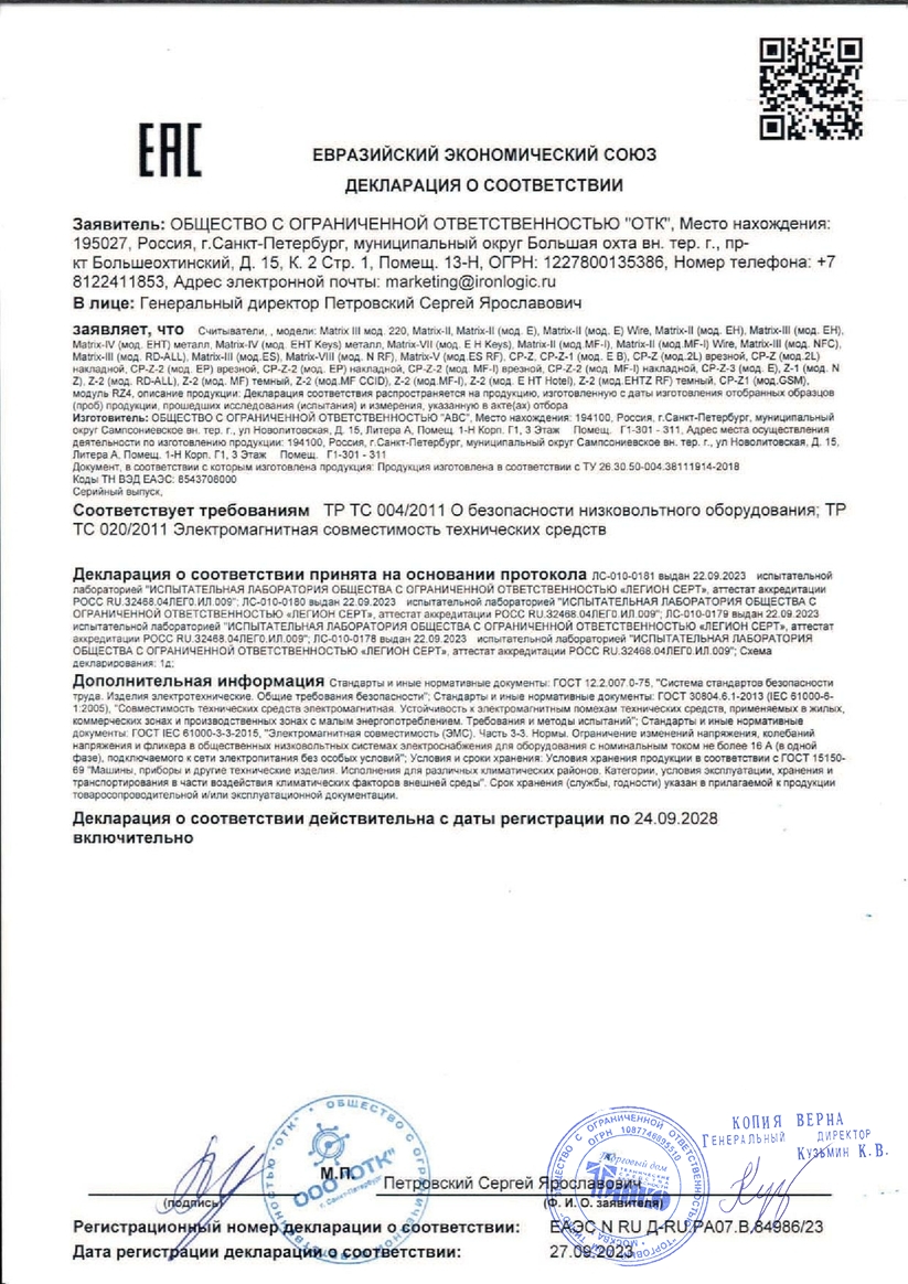 IronLogic Matrix-II - RFID считыватель, предназначенный для работы с сетевыми и автономными системами контроля доступа, работающих с идентификаторами EM Marine на частоте 125 КГц. Считыватель реализован в компактном пластиковом влагозащищенном корпусе и предназначен для работы как на улице, так и внутри помещения с диапазоном температур окружающей среды от -40°С до +50°С. Работает с идентификаторами на расстоянии до 8 см. Благодаря своей невысокой стоимости и надежности, модель стала популярной среди считывателей на рынке систем безопасности контроля доступа.