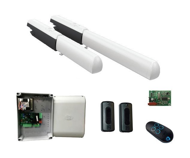 (ATI5000A RC combo KIT) Комплект автоматики для двухстворчатых распашных ворот на основе привода А5000А (блок управления ZF1N, радиоуправление с динамическим кодом, фотоэлементы). Комплект в составе: (001A5000A) A5000A - Привод 230 В линейный, самоблокирующийся; (806TS-0270) TOP44RBN - Брелок-передатчик 4-х канальный, 433,92 МГц, с динамическим кодом; (001DIR10) DIR10 - Фотоэлементы / передатчик, приемник / накладные, дальность 10 м; (001AF43S) AF43S - Плата-радиоприемник 433.92 МГц; (002ZF1N) ZF1N - Блок управления для приводов 230 В