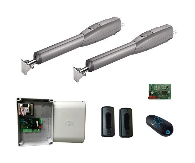 (ATS30 RC combo KIT) Комплект автоматики для распашных ворот на основе привода ATS30AGS (блок управления ZF1N, радиоуправление с динамическим кодом, фотоэлементы). Комплект в составе: (801MP-0120) ATS30AGM - Привод 230 В линейный, самоблокирующийся, со встроенными концевыми выключателями, для створок до 3 м.; (806TS-0270) TOP44RBN - Брелок-передатчик 4-х канальный, 433,92 МГц, с динамическим кодом; (001DIR10) DIR10 - Фотоэлементы / передатчик, приемник / накладные, дальность 10 м; (001AF43S) AF43S - Плата-радиоприемник 433.92 МГц; (002ZF1N) ZF1N - Блок управления для приводов 230 В