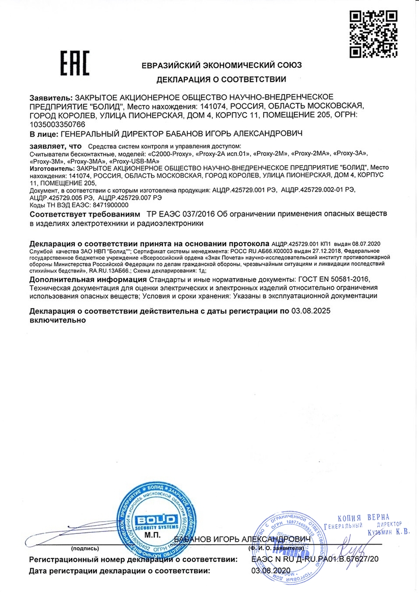 Считыватель бесконтактный для работы с идентификаторами формата MIFARE, EM-Marin, а также картами HID ProxCard II; интерфейс подключения Wiegand-26/37/44, Touch Memory, RS-232, ABA TRACK II; расстояние считывания 6...12 см; U-пит.8...15 В, I-потр. 0,2 А; IP20, t-раб.-25...+60°С, габ.размеры 143х71х25 мм. Накладной.
