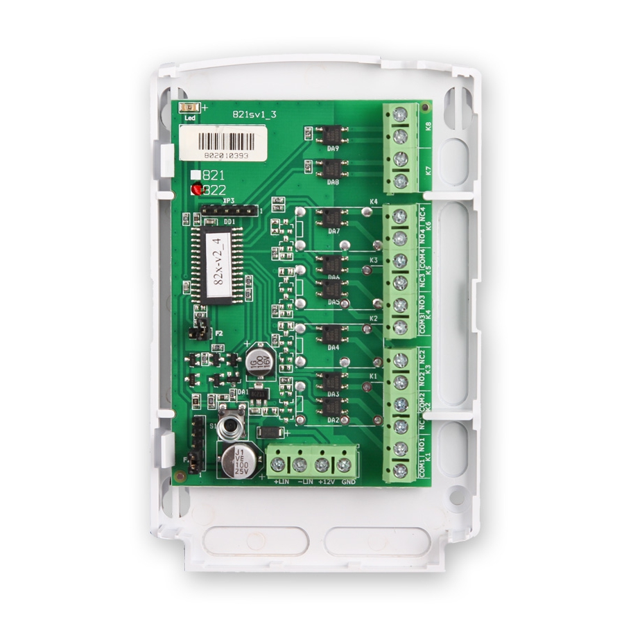 Модуль реле сигнальных, 8 реле, 100 В, 0.1А, с контактами на размыкание, возможность работы с: ППКОП Астра-812, Астра-712/х, РПУ Астра-РИ(-М), модулями Астра-831/832, выбор режимов работы с ПК