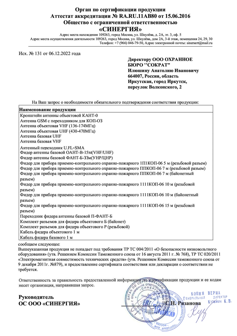 Внешняя антенна GSM (кабель 2 м) с переходником U.FL-SMA для КОП-3 выпуска после 2019 г.