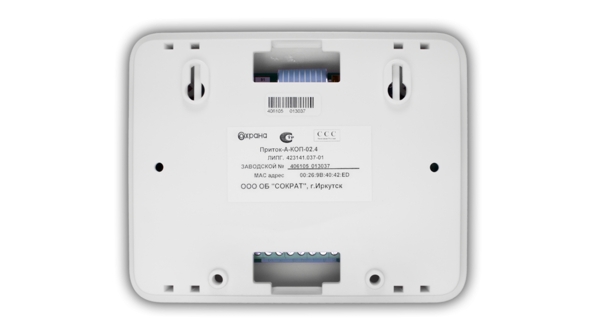 Характеристики: Светодиодная индикация состояния шлейфов - 4. Без встроенной клавиатуры. Программируемых шлейфов (ОС, ТС) - 4. Силовых выходов - 2. Считыватель брелоков Приток-NFC. Брелок Приток-NFC - 2 шт. Питание -внешний резервируемый источник 12 В. Комплект поставки: Устройство оконечное объектовое Приток-А-КОП-02.4 - 1 шт. Паспорт - 1 шт. Краткое руководство по эксплуатации - 1 шт. Бесконтактный брелок Приток NFC - 1 шт. Резистор MF-25-4,7 кОм - 4 шт. Резистор MF-25-1,2 кОм - 1 шт. Светодиод красного цвета L-53LID - 1 шт. Шуруп 3,5x35 - 4 шт. Дюбель 6x30 - 4 шт.