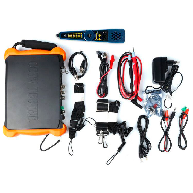 Универсальный монитор-тестер AHD/CVI/TVI/CVBS/SDI и IP-видеосистем. (Базовая модель+мультиметр+измеритель оптич. мощности+тестер оптич. линий+кабельный рефлектометр BNC+детектор кабельной трассы). Возможности: Поддержка ONVIF, 8Mp TVI, 8Mp CVI, 8Mp AHD, HD-SDI 1080p/EX-SDI 8Mp, Доступ в Web-интерфейс камеры с помощью встроенного браузера, Android-Приложения для управления камерами c возможностью самостоятельной установки/удаления ПО, Audio/Video плееры, Запись аудио/Video потоков, скриншотов на карту памяти, Кабельный рефлектометр с интерфейсом RJ-45 и BNC, измерение уровней видеосигнала, генератор тестовых таблиц, проверка UTP-кабеля, тестирование IP-сетей, RTSP, измерение РоЕ-напряжения, генератор CVBS, PTZ-управление, Мониторинг интерфейса RS485, HDMI-генератор, источник питания PoE (48V, 24Вт), источник питания DC12V/3А, источник питания DC24V/2A, источник питания DC5V/2А (USB), мультиметр, детектор кабельной трассы, локатор COAX/UTP кабеля, тест оптич. линий, измеритель оптич. мо