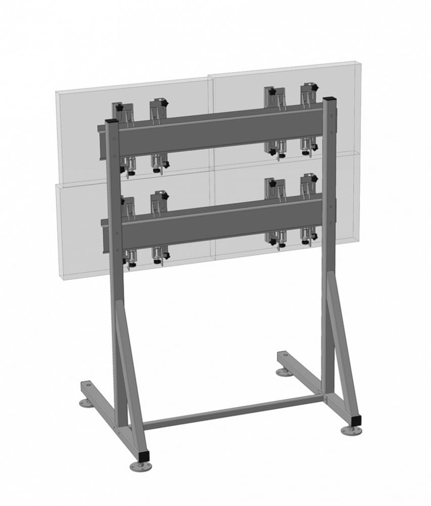 LB-22FT Кронштейн напольный 2х2 с откидными креплениями. Максимальная нагрузка 4х70кг. Обратный наклон для подключения +25°.Регулировка по вертикали: 0~50мм. VESA: 200x200, 200x300, 300x200, 300x300, 300x400, 400x200, 400x300, 400х400, 600x400 мм.Размеры (ШxВxГ): 1200х1600х900 мм. Вес: 97 кг.