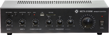 Применяется в качестве основного устройства локальных систем трансляционного вещания и оповещения для небольших объектов (АЗС, конференц‑зал, актовый зал и пр.) и предназначены для усиления мощности электрических сигналов звукового диапазона внешних источников сигнала (микрофон, mp3‑плеер, компьютер и т.д.).