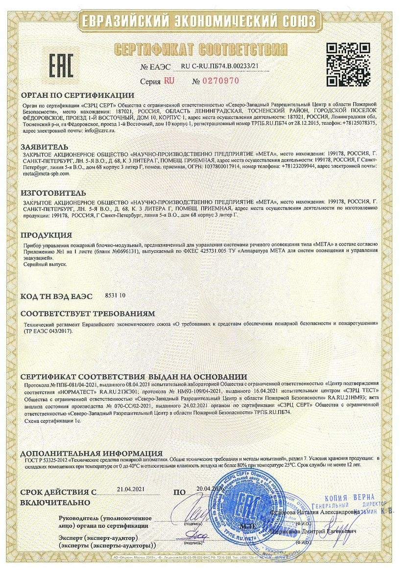 Трансляционный усилитель мощности МЕТА 9153 предназначен для усиления мощности электрических сигналов звукового диапазона.Функциональные возможности: Выходное напряжение 100 В/25 В.Регулятор чувствительности для каждого входа.Программируемое управление приоритетными входами.Дистанционное управление включением.Лимитер для защиты от перегрузки по входу и выходу.Резервное питание +48 В/-48 В.Индикация подключения РИП и аварии.Индикация уровня выходного сигнала.Выдача сигнала «АВАРИЯ» по системной шине управления на блок МЕТА 9401.Естественное охлаждение.Круглосуточный режим работы.