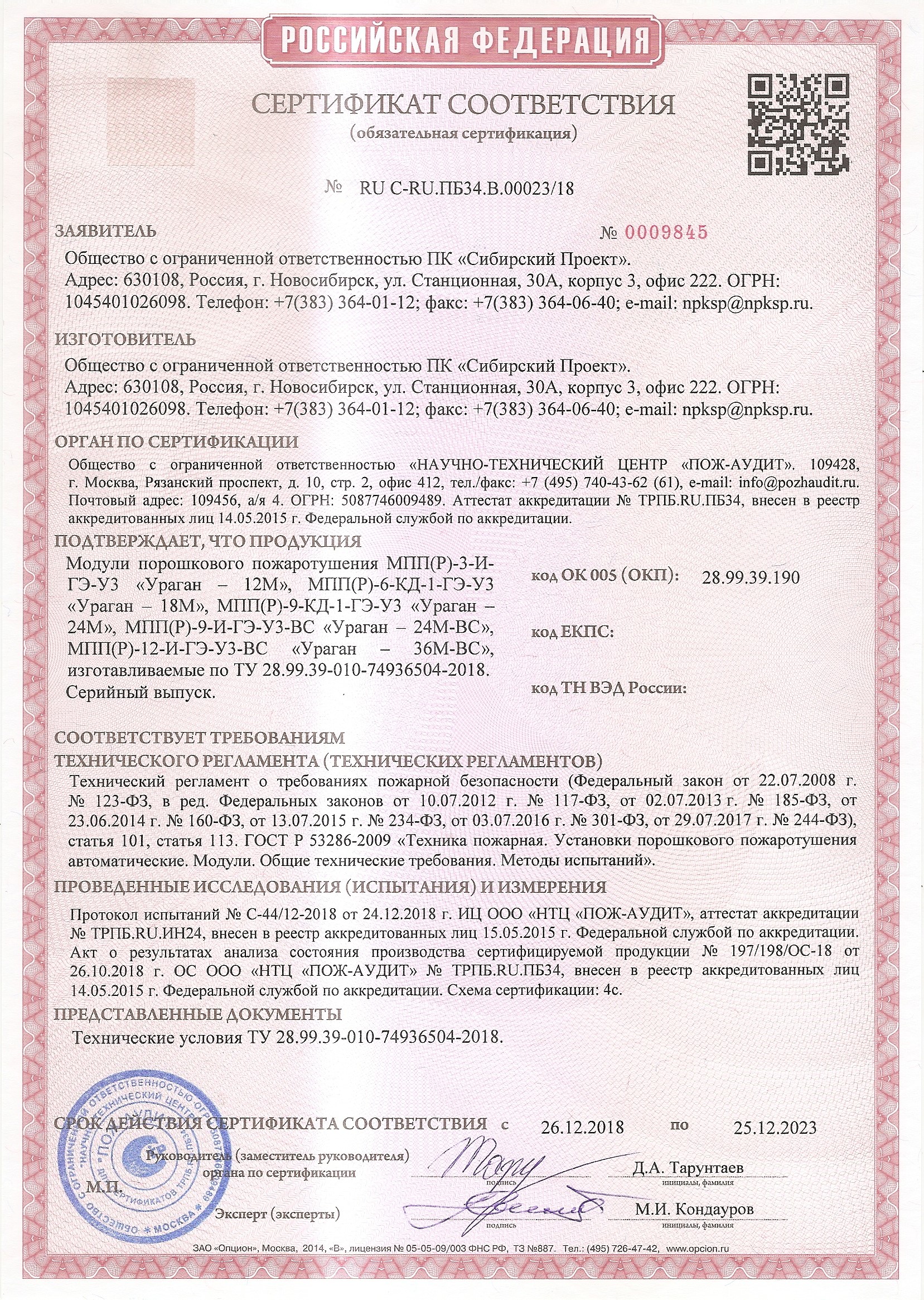 Модуль порошкового пожаротушения МПП(р)-3-И-ГЭ-У3 «Ураган–12М» ТУ 28.99.39-010-74936504-2018