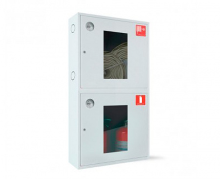 Шкаф для пожарного крана диам. 51/66 мм. Металл, толщиной 0,6 мм — 0,8 мм. навесной (Н), открытый (О), 700х1300х300 (для двух рукавов и двух огнетушителей 300)
