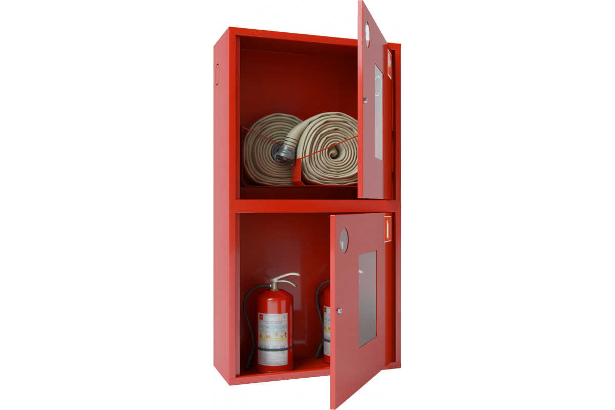 Шкаф для пожарного крана диам. 51/66 мм. Металл, толщиной 0,6 мм — 0,8 мм. навесной (Н), открытый (О), 700х1300х300 (для двух рукавов и двух огнетушителей 300)