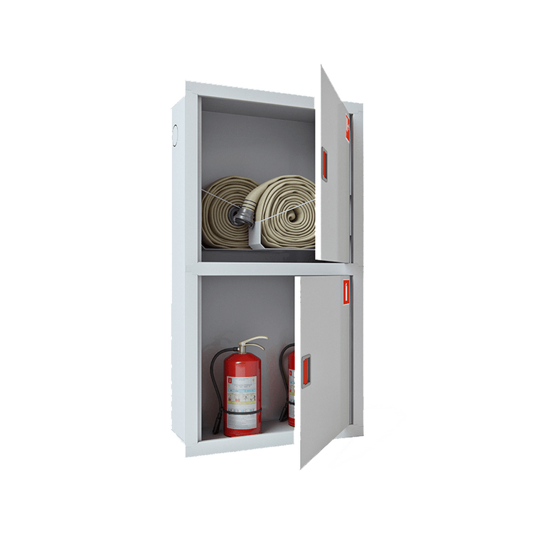 Шкаф для пожарного крана диам. 51/66 мм. Металл, толщиной 0,6 мм — 0,8 мм. встроенный (В), закрытый (З), 700х1300х300 (для двух рукавов и двух огнетушителей 300)