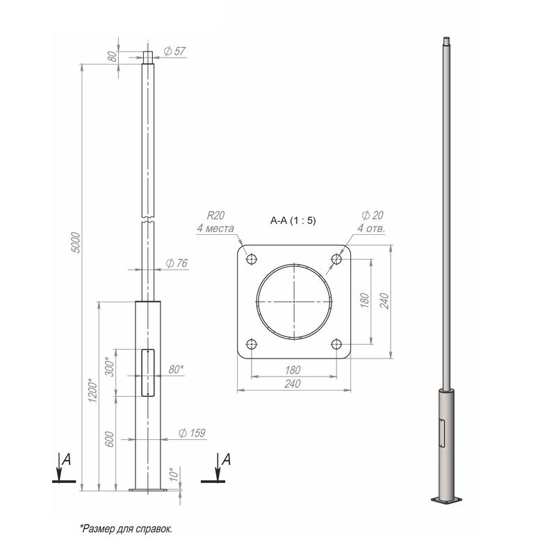 Опора ОП2ф-5,0-159/76/т57-(К240-180-4х20)-ц