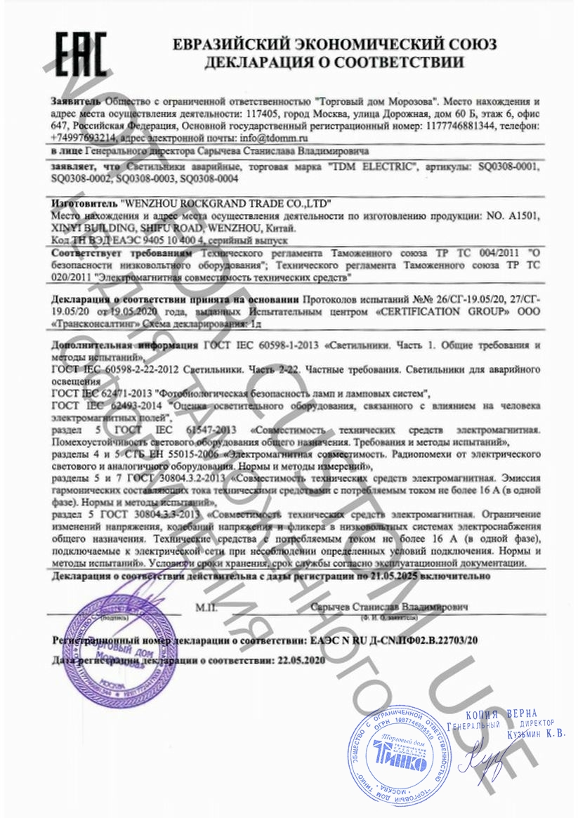 Светильник аварийный эвакуационный светодиодный ССА1-01, 3 Вт, 1,5 ч, одност., ВЫХОД-EXIT TDM