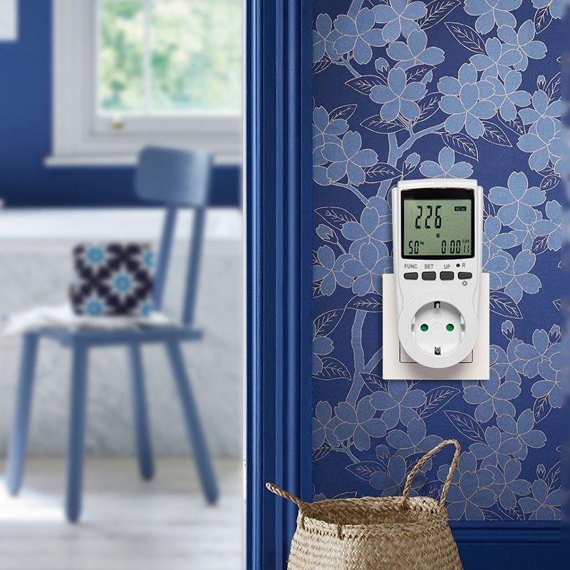 Простой в использовании счётчик потребляемой электроэнергии розетка-ваттметр/вольтметр/амперметр (измеритель мощности, напряжения, счётчик электроэнергии) REXANT® RX-11 предназначен для измерения и контроля потребления энергии различными электроприборами, оснащен возможностью установки цены киловатт-часа, что позволяет узнать суммарную стоимость потребленной электроэнергии. Благодаря возможности установки двух ценовых режимов (установка дней недели и времени смены режима), данная модель подходит для круглосуточного измерения потребления электроприборов. Розетка-ваттметр REXANT® RX-11 оснащена ЖК дисплеем c подсветкой, кнопками управления, кнопкой сброса настроек и быстрой очистки данных. Отображаемые параметры: Текущее время Напряжение сети (В) Ток, потребляемый подключенным электроприбором (А) Потребляемая мощность подключенного электроприбора (Вт) Количество электроэнергии, потребленной подключенным электроприбором (кВт/ч) Частота переменного тока (Гц) КПД подключенного устройства Суммарное время работы