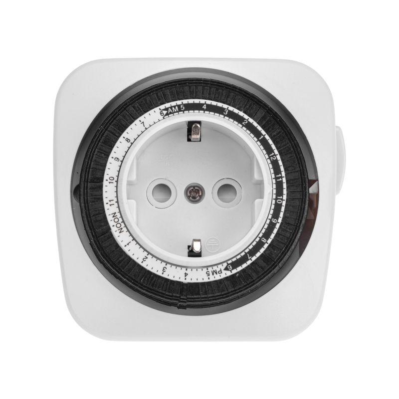 Розетка с таймером необходима для включения и выключения домашних электрических приборов в Ваше отсутствие. Задание программ осуществляется с помощью механического программного диска. Характеристики: • Тип таймера - суточный, механический • Шаг таймера - 15 минут • Максимальная нагрузка - 3500 ВТ • Ток - 16А • Степень защиты - IP20 • Напряжение - 230 В • Частота - 50 Гц