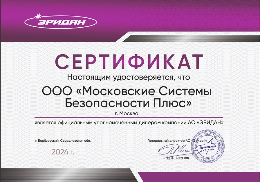 ООО "Московские системы безопасности плюс" стала официальным дилером АО "Эридан"