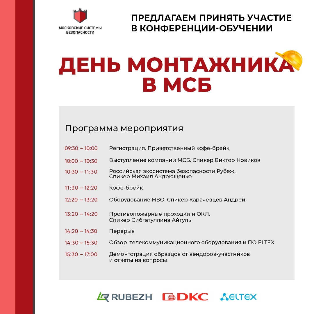 В качестве спикеров также будут представлены эксперты из компаний: ДКС, Рубеж и Eltex.